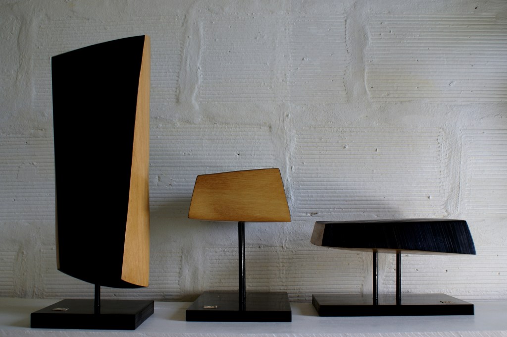 Réalisation sur commande en contreplaqué sculpté. Finition vernis mat.